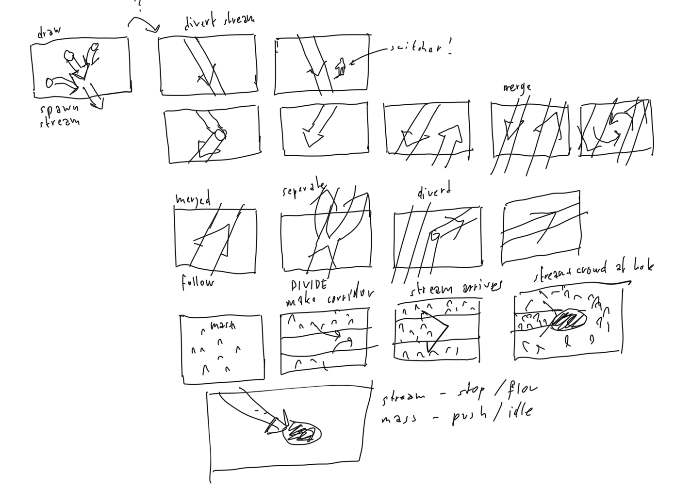 In spring, our team of four flew out to GDC in San Francisco were we showed our premature KIDS pre-alpha. It wasn't very good. We had created many scenes using different interaction methods that we deemed satisfactory. However, we had difficulty finding a way of connecting them in a way that felt right. We especially recall a meeting with a Chinese publisher calling KIDS "too desperate" and in need "for colour and a story". "People don't want to be reminded of reality, they want to escape their reality. You must be very happy to make a game this desperate." At this point we would optimistically state that KIDS would launch in late 2017.